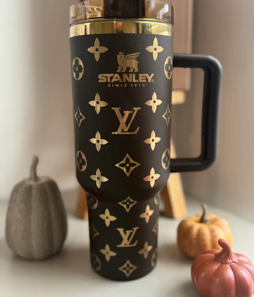 LOUIS VUITTON Chocolate Gold Engraved Stanley Tumbler 40OZ – Luxury Tumbler 2024 AZS240902