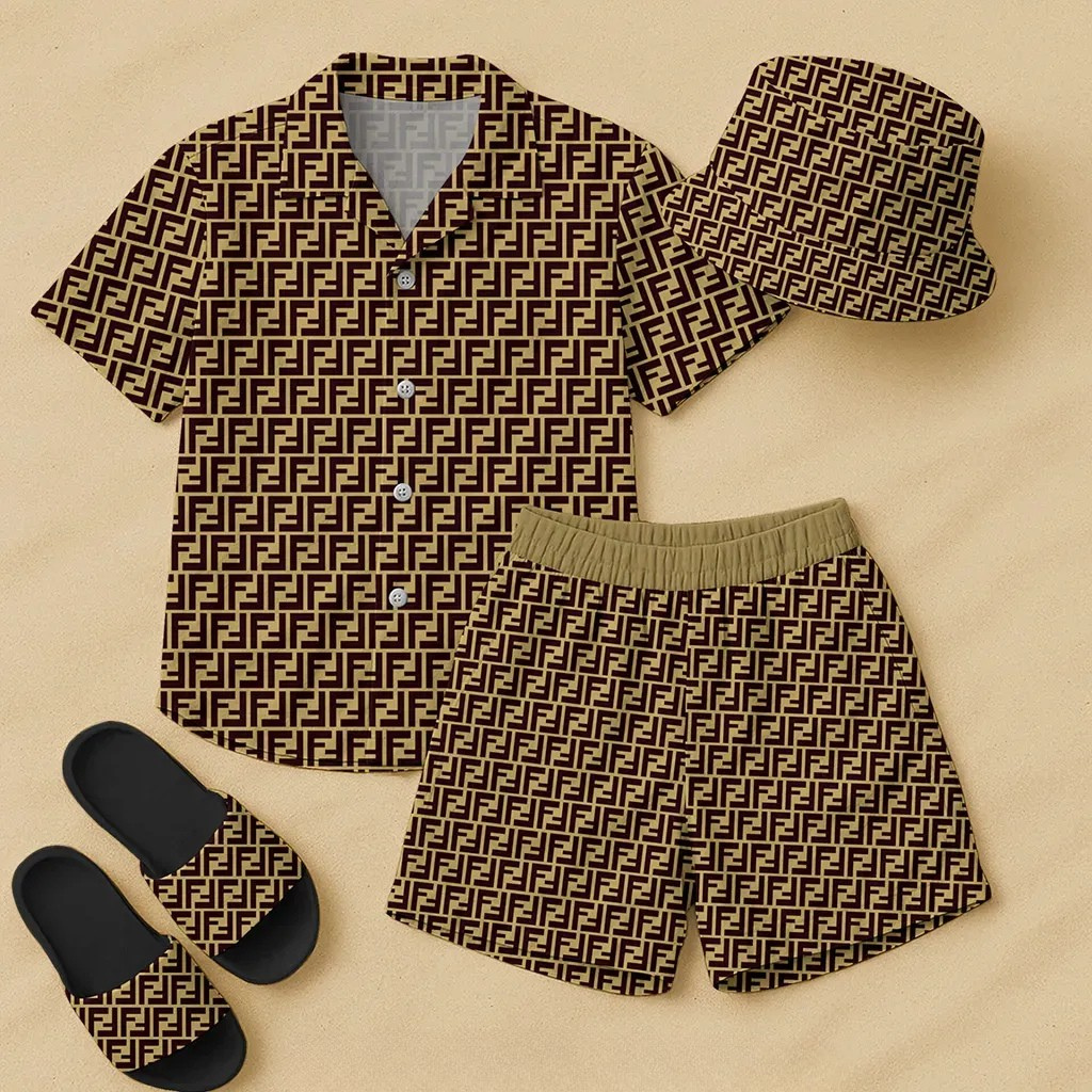 Fendi Men Combo Hawaiian Short Set With Hat and Slippers A26092518